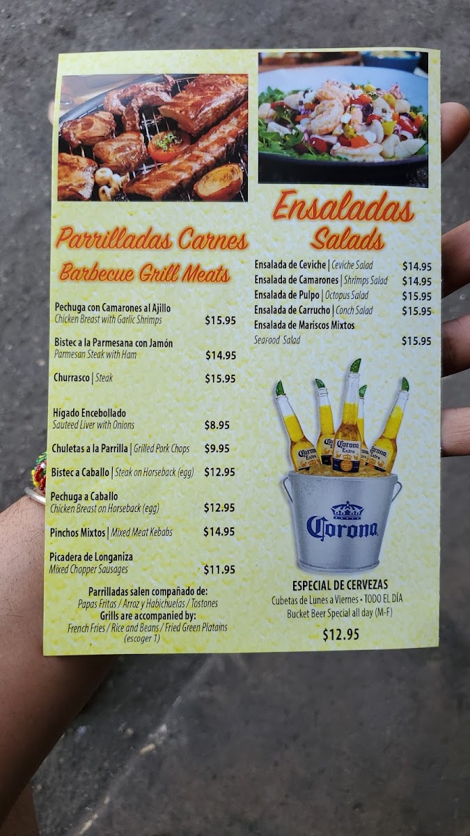The menu at El Rey De Los Pollos features a diverse selection of Latin American and Dominican cuisine, organized into several main categories to cater to various dining preferences throughout the day. Patrons can choose from salads, mofongos (mashed plantain dishes), and a variety of meat options, each prepared with traditional ingredients and flavors.